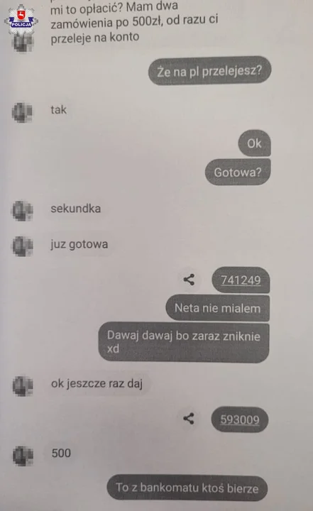 - Zarówno kuzynka i brat bez weryfikacji otrzymanych informacji postanowili pomóc. Bez zastanowienia wygenerowali kody blik i przesłali je za pomocą komunikatora. Kobieta wygenerował dwa kody z kwotą po 500 zł każdy, zaś mężczyzna jeden kod na sumę 500zł. Jak twierdzą nie spodziewali się, że mogło być to oszustwo tym bardziej, że są ze sobą blisko spokrewnieni. Tym samym oboje stracili kwotę 1500 zł. Niestety transakcji nie dało się już cofnąć, pieniądze zostały wypłacone w jednym z bankomatów na terenie Polski - dodaje sierżant sztabowy Ewelina Semeniuk.