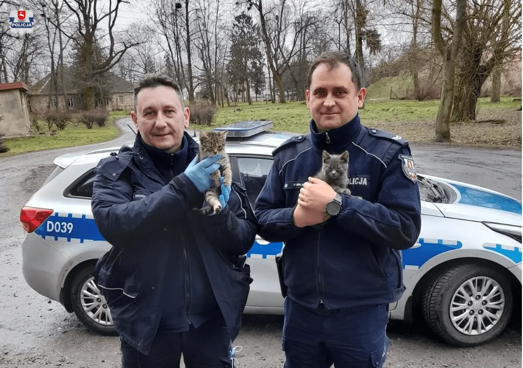 Autor: KWP Lublin | Opis: Ktoś porzucił dwa koty na drodze. Uratowali je policjanci