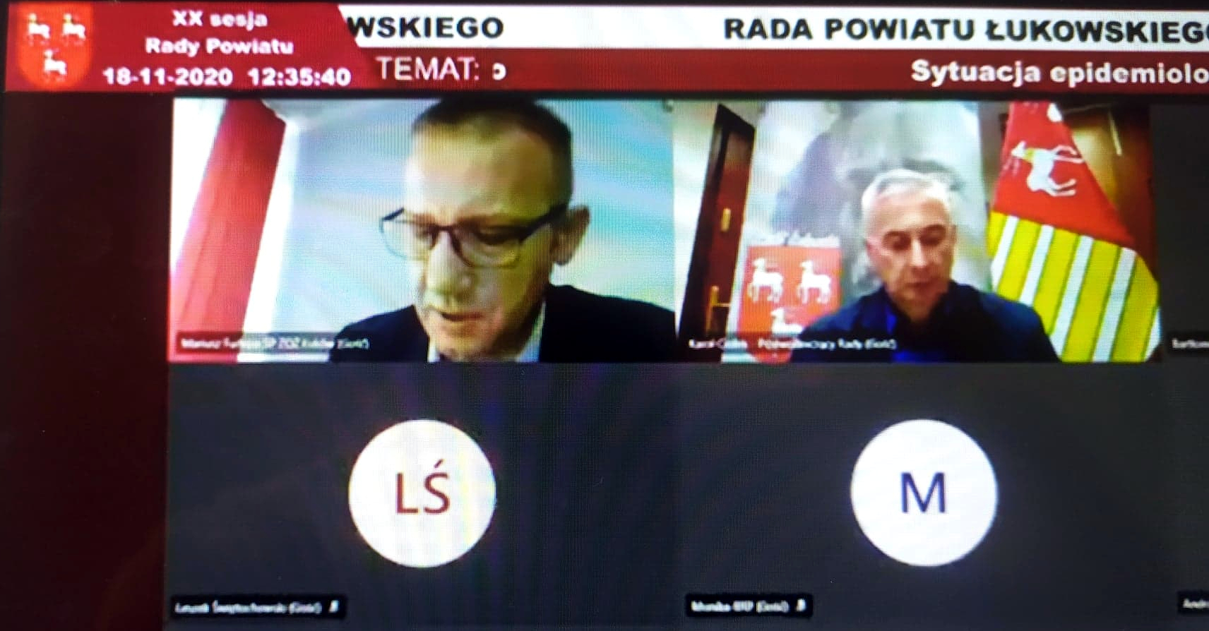 Trwa sesja rady powiatu. Radni wysłuchują wystąpienia dyrektora łukowskiego szpitala.