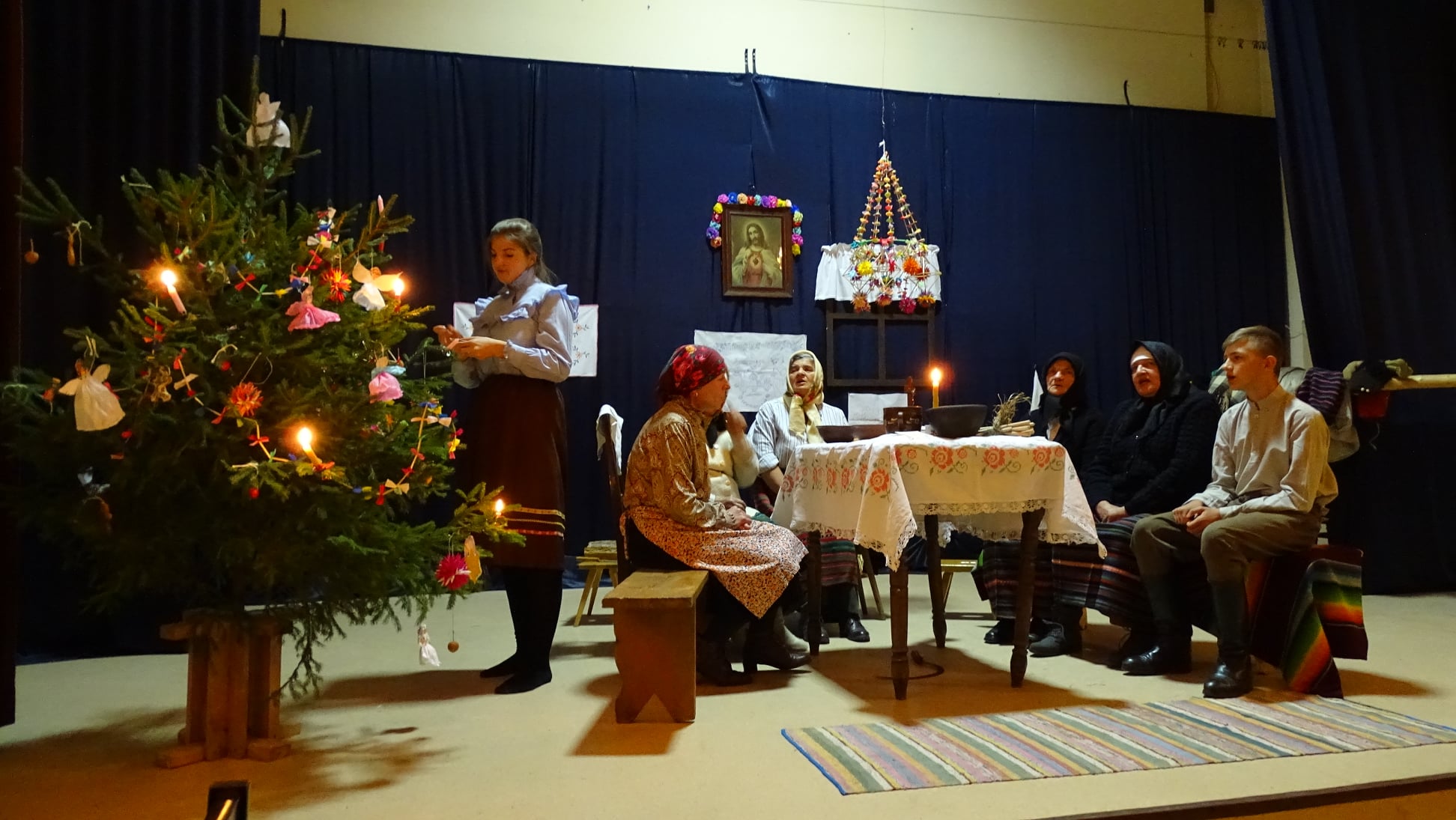 Na scenie ze swoim premierowym widowiskiem „U Maciejów na Gody” prezentował się zespół obrzędowy Zawsze Razem z Woli Gułowskiej, działający pod patronatem Gminnej Biblioteki Publicznej w Adamowie.