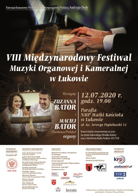 Patronat honorowy nad „VIII Międzynarodowym Festiwalem Muzyki Organowej i Kameralnej w Łukowie” objął Prezydent Rzeczypospolitej Polskiej Andrzej Duda. W skład Komitetu Honorowego wchodzą: JE Ks. Bp Kazimierz Gurda Ordynariusz Siedlecki, Minister Kultury i Dziedzictwa Narodowego Piotr Gliński, Prorektor Katolickiego Uniwersytetu Lubelskiego im. Jana Pawła II Ks. prof. dr hab. Andrzej Kiciński, Marszałek Województwa Lubelskiego Jarosław Stawiarski, Senator Rzeczypospolitej Polskiej Stanisław Gogacz, Poseł na Sejm Rzeczypospolitej Polskiej Sławomir Skwarek, Starosta Łukowski Dariusz Szustek, Burmistrz Miasta Łuków Piotr Płudowski oraz Dyrektor TVP3 Lublin Ryszard Montusiewicz. Dyrektorem artystycznym Festiwalu jest Mateusz Rzewuski.