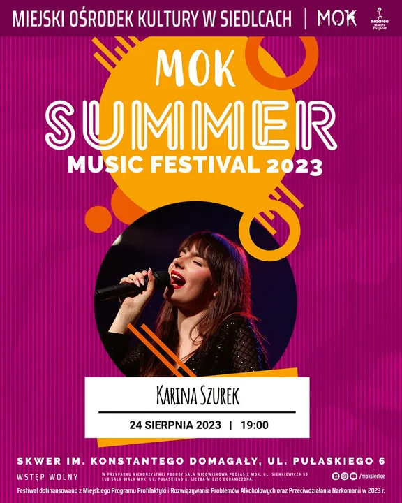 Kultura24 sierpnia o 19.00 na skwerze im. Konstantego Domagały w Siedlcach odbędzie się koncert Kariny Szurek.