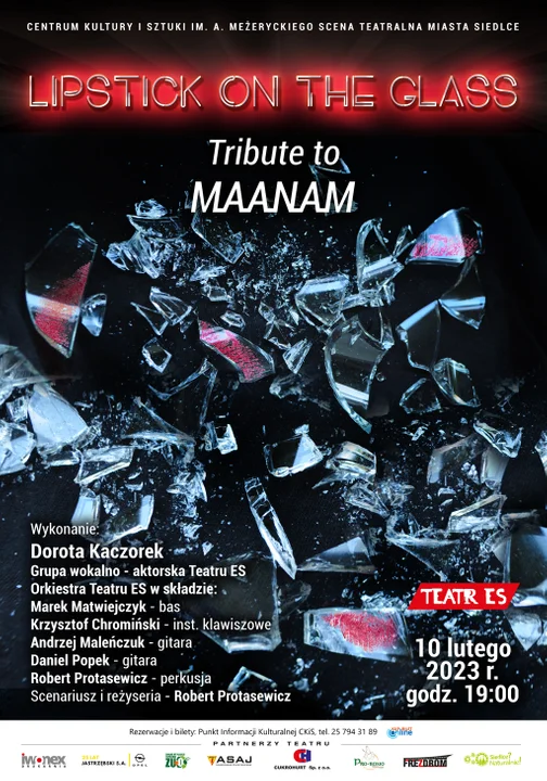„Lipstick on the glass - Tribute to Maanam” to widowisko muzyczne prezentujące twórczość hitowego polskiego zespołu, którego liderka odeszła przedwczesną śmiercią po długiej chorobie.