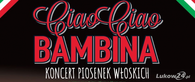 Na ósmego marca przyszłego roku zaplanowano koncert piosenek włoskich „Ciao Ciao Bambino”. W sali widowiskowej Łukowskiego Ośrodka Kultury pojawią się tego dnia włoskie i światowe szlagiery muzyczne. Wydarzenie zaplanowano na godz. 19.00, a na trzy miesiące przed terminem placówka uruchamia sprzedaż biletów. Wejściówki w cenie 35 zł (normalny) i 25 zł (ulgowy dla słuchaczy ŁUTW, rencistów i emerytów) dostępne są w kasie Kina Łuków oraz na stronie internetowej Ekobilet.