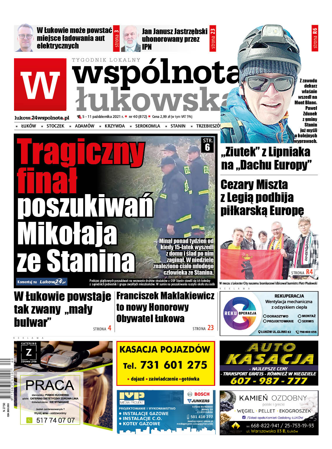 W zapowiedzi artykułu na pierwszej stronie Wspólnoty Łukowskiej zrobiłem błąd. Imię 15-latka to Mikołaj. Zostało to sprostowane w wersji zamieszczonej w internecie.
