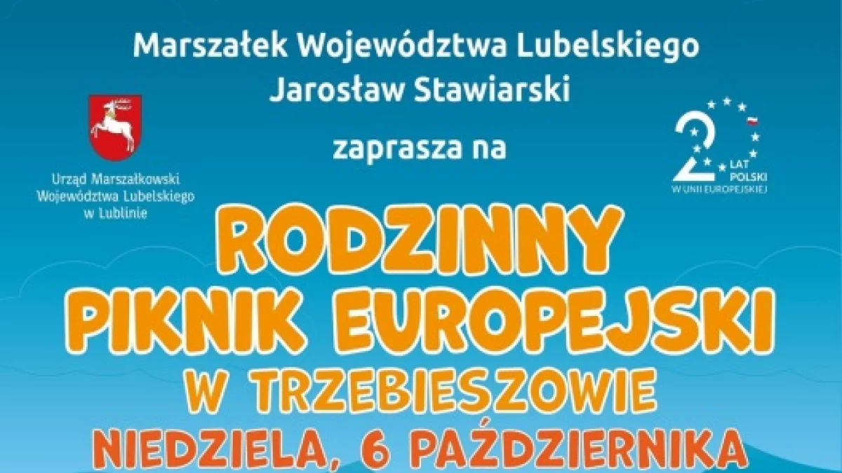PROMOWANERodzinny Piknik Europejski odbędzie się w niedzielę (06.10.2024) w Trzebieszowie . Będzie m. in. strefa zdrowia: pokazy udzielania pierwszej pomocy, strefa gier i zabaw. Zostanie również zorganizowany Punkt Informacyjny Funduszy Europejskich