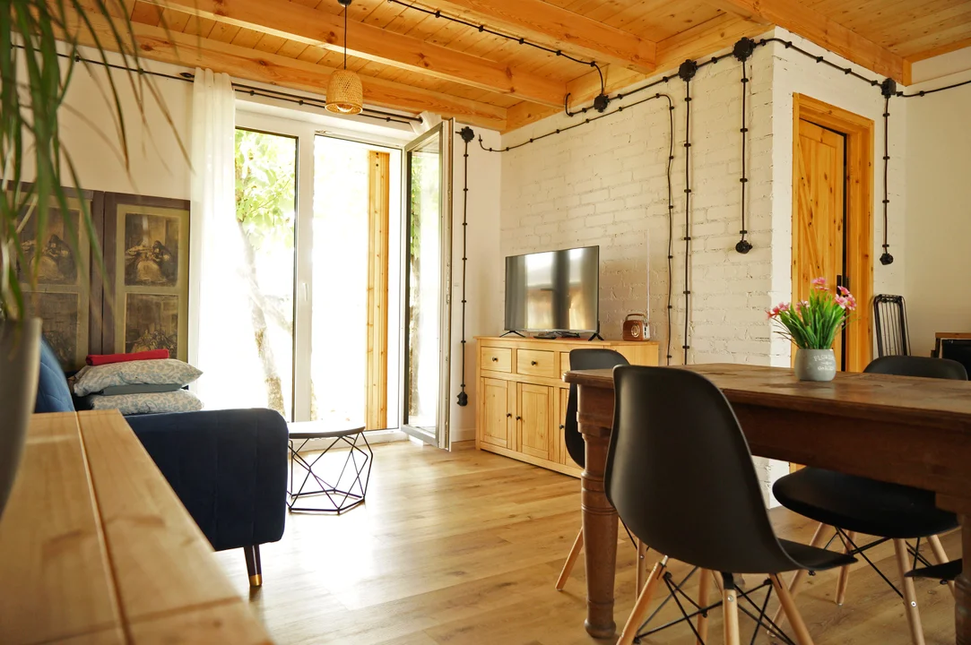 Każdy domek ma własną, niezależną strefę wypoczynkową:balię z jacuzzi, altanę, grill, miejsce na ognisko i prywatny parking. Goście nie muszą dzielić przestrzeni z innymi — pełna swoboda i prywatność są tu standardem. To idealne miejsce zarówno na rodzinny wypoczynek, jak i bardziej kameralne okazje, np. kobiece wyjazdy czy wieczór panieński w otoczeniu natury.