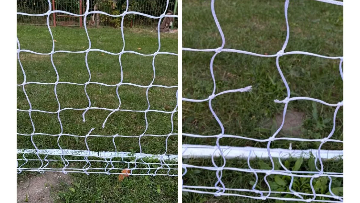 Obiekt Dwernickiego Stoczek Łukowski. Piękne bramki, a na nich siatki. Podchodząc bliżej można się zdenerwować i to mocno. Nieznany sprawca zniszczył w kilku miejscach fragment siatki w jednej z bramek.