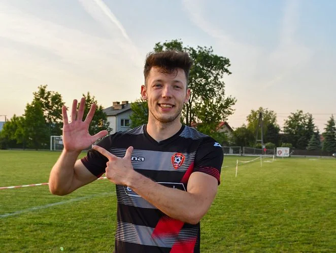 24-latek trafił do ekipy Andrzeja Zarzyckiego z AR-TIG-u Huta Dąbrowa. W meczu z beniaminkiem zdobył aż pięć goli. - To mój największy sukces, tym bardziej w Klasie Okręgowej. W sumie mam bodaj osiem trafień - mówi Dawid Grzyb.