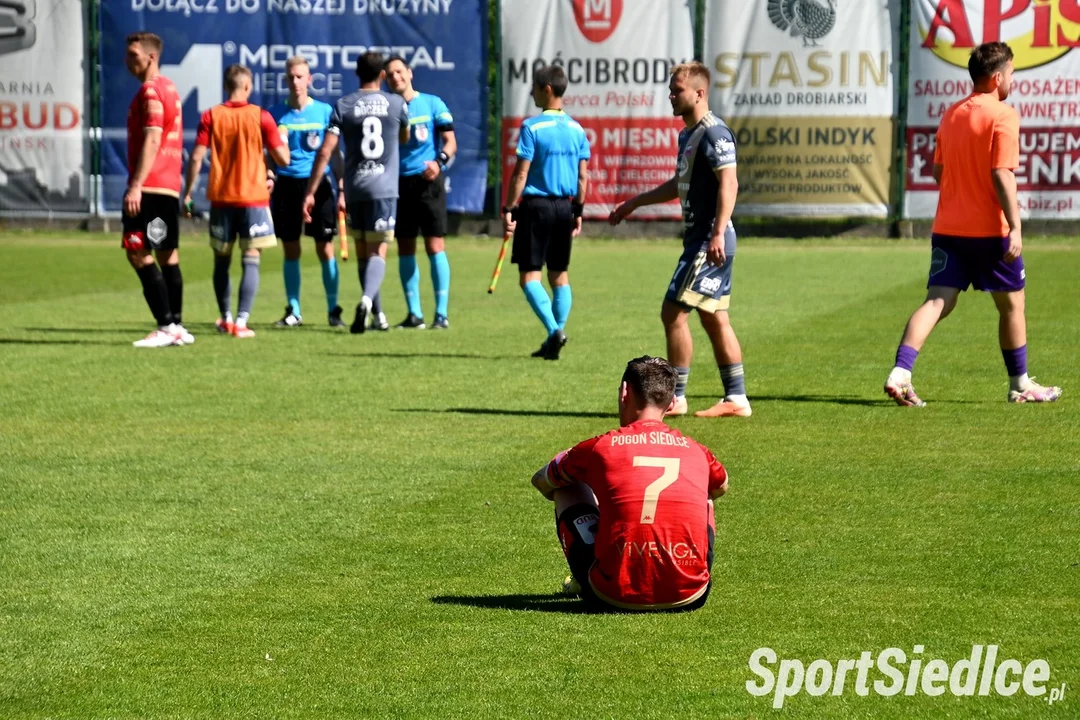 Po przegranej 0:2 pierwszej połowie siedlczanie zebrali się w sobie i rzucili się do odrabiania strat. Gol Cezarego Demianiuka wlał nadzieje w serca kibiców, lecz zaraz po nim Chojniczanka wyprowadziła trzeci cios. Nie okazał się on jednak nokautujący. Demianiuk skompletował dublet, a w ostatniej minucie meczu miał okazję doprowadzić do remisu strzałem z wapna. Niestety, Damian Primel zastopował uderzenie wychowanka Pogoni.