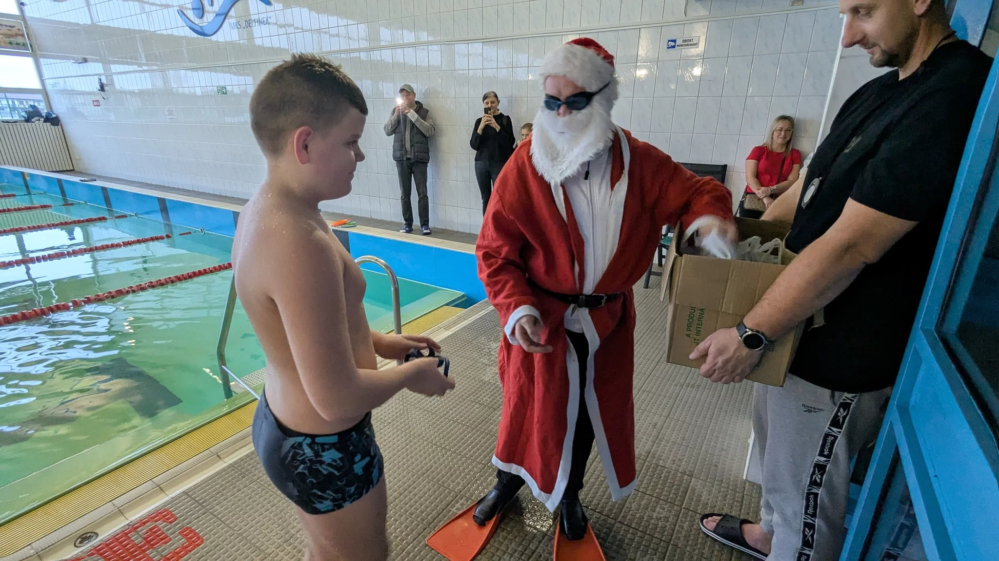 Podczas zawodów nie brakowało zarówno emocji, jak i humoru. Woda dosłownie „wrzała”, a na trybunach panował klimat prawdziwego święta - czerwone czapki, świąteczne ozdoby i rodzice gorąco wspierający swoich młodych sportowców. Najmłodsi uczestnicy, okrzyknięci żartobliwie „mini-delfinkami turbo”, zachwycali odwagą i determinacją, a ich rywalizacja często była równie widowiskowa co starty starszych kolegów.