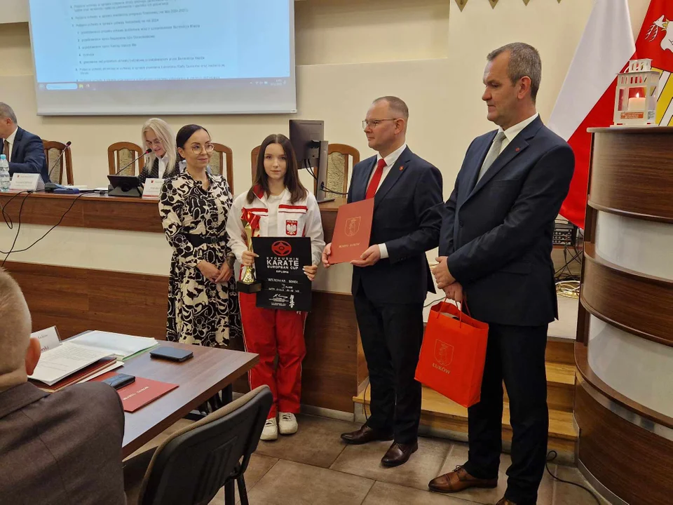 Dzisiaj podczas sesji Rady Miasta odebrała gratulacje od burmistrza Łukowa Piotra Płudowskiego oraz przewodniczącego Rady Miasta Krzysztofa Oklińskiego.