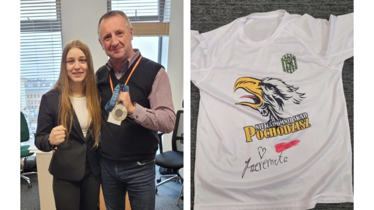 - Miałem medal olimpijski w rękach, a obok super sportowca. To miła i sympatyczna dziewczyna, która chętnie podpisała się na naszym trykocie. Jak przyznała, od zdobycia krążka w Paryżu wiele się dzieje. Jest świadoma, iż panuje "Szeremetomania" - mówi Osial.