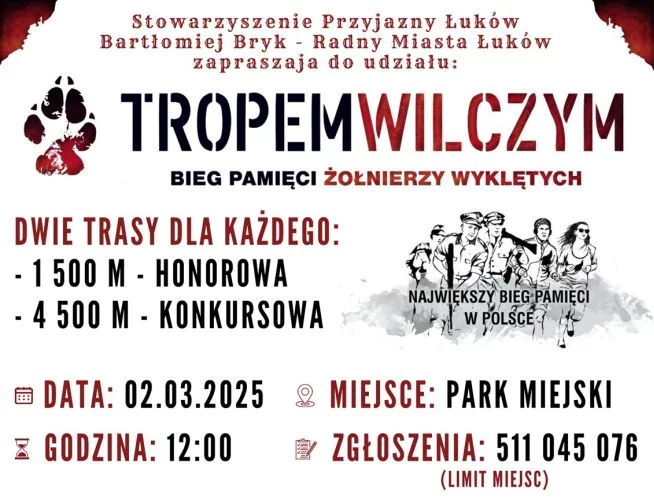 Jak dodają organizatorzy, bieg Tropem Wilczym to nie tylko sportowe wydarzenie, ale również bardzo ważna lekcja historii, która łączy nas jako społeczność. Ponadto każdy uczestnik otrzyma wyjątkowy pakiet startowy, który będzie zawierał pamiątkowy medal, koszulkę z edycji 2025, materiały historyczne i ciepły posiłek po biegu