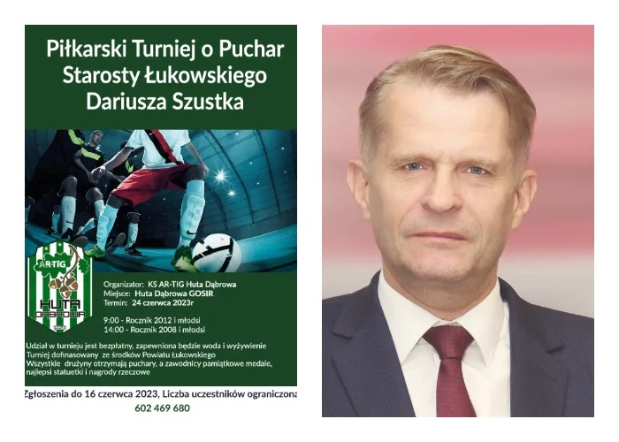 SportJuż 24 czerwca w Hucie Dąbrowie odbędzie się Turniej o Puchar Starosty Łukowskiego Dariusza Szustka. Do walki przystąpią drużyny z roczników 2008 oraz 2012.