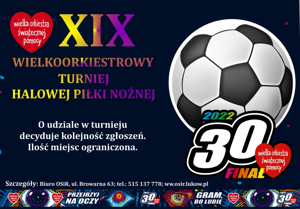 Szczegółowe informacje: Łukowski Sztab WOŚP, ul. Browarna 63, tel. 25 798 23 89, 515 137 778, e-mail: imprezy@osir.lukow.pl