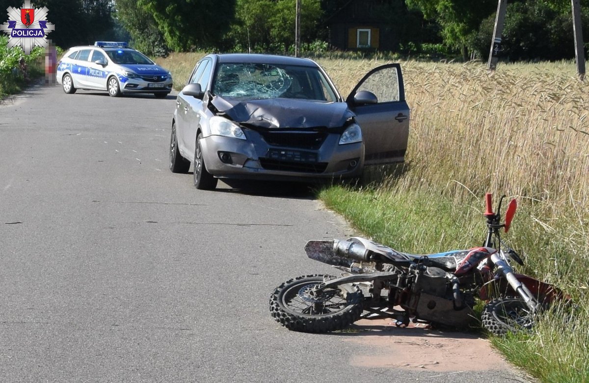 Mundurowi którzy przyjechali we wskazane miejsce ustalili, że kierujący samochodem marki Kia Ceed 43-letni mieszkaniec gminy Wojcieszków zderzył się z motocyklem, którym kierował 10-latek z gminy Adamów. W wyniku wypadku chłopiec doznał poważnych urazów i został przetransportowany śmigłowcem LPR do specjalistycznego szpitala.