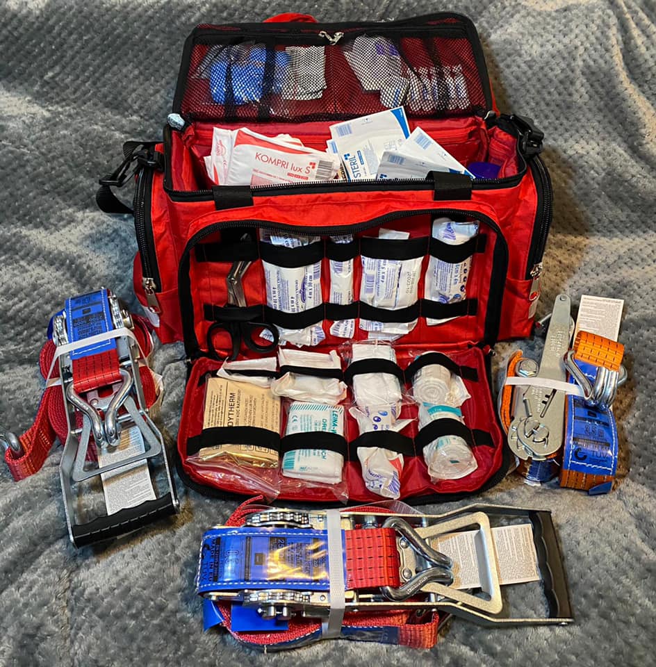 Artur Kot zdecydował się ufundowaćjednostce OSP Krzywda TORBĘ OPATRUNKOWĄ oraz 3 zestawy PASÓW TRANSPORTOWYCH ( 2 zestawy o dł. 8m oraz jeden o dł. 4m ) oraz wytrzymałości 5t przypadający na każdy z nich.