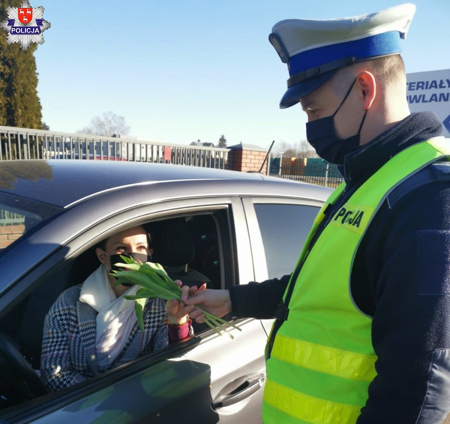 Policjanci z łukowskiej drogówki w tym wyjątkowym dniu podczas kontroli wręczali Paniom kwiatki. Wszystkie Panie obiecały, że taką postawę będą prezentowały na co dzień, nie tylko w dniu ich święta.