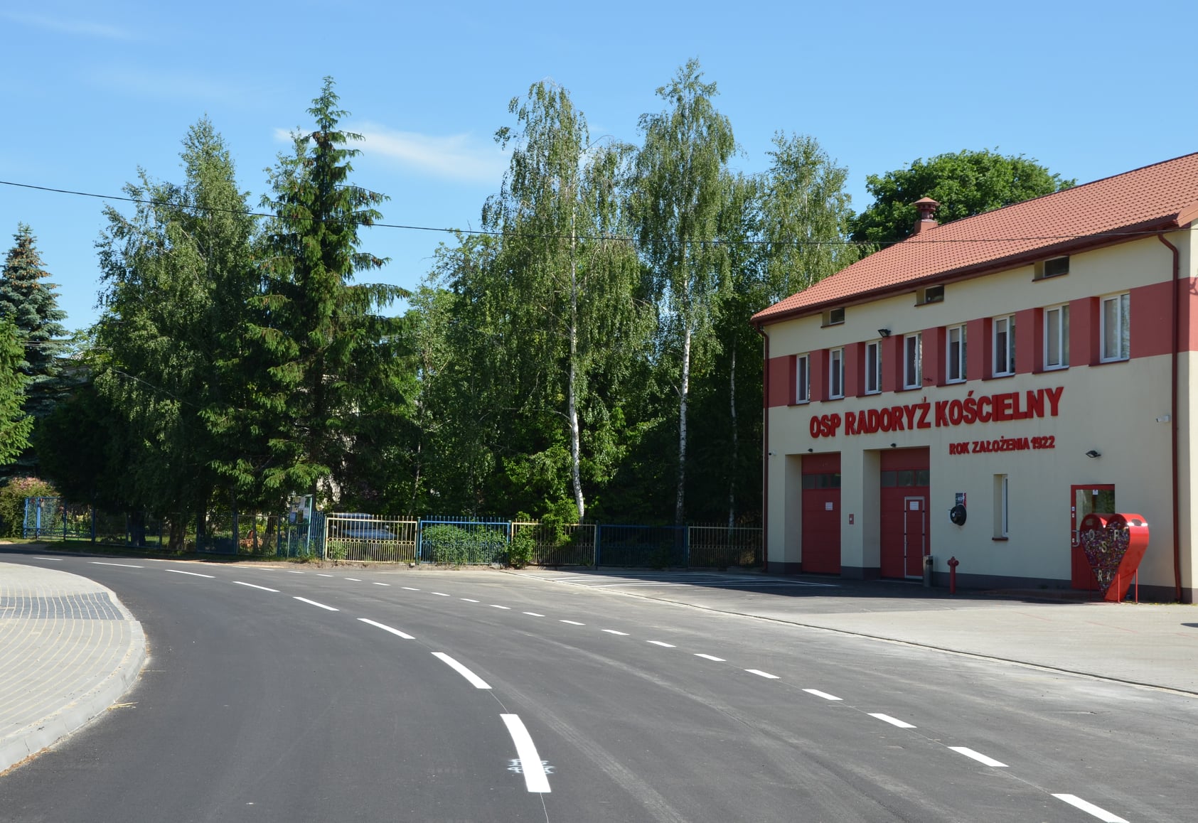 Modernizacja drogi gminnej w miejscowości Radoryż Kościelny objęła również odcinek dojazdowy do strażnicy OSP oraz przykościelny parking na którym zostały namalowane miejsca postojowe.