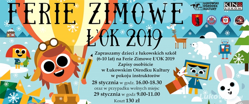 Łukowski Ośrodek Kultury tradycyjnie podczas ferii zimowych organizował będzie turnusy dla uczniów szkół. Z oferty skorzystać mogą wszystkie dzieci w wieku 6-10 lat, uczęszczające do placówek mieszczących się na terenie miasta. W dwóch tygodniowych turnusach zorganizowanych przez ŁOK udział weźmie 90 dzieci (45 dzieci na każdy turnus). Pierwszy turnus odbywać się będzie w dniach 11-15, a drugi w drugim tygodniu ferii, tj. 18-22 lutego.