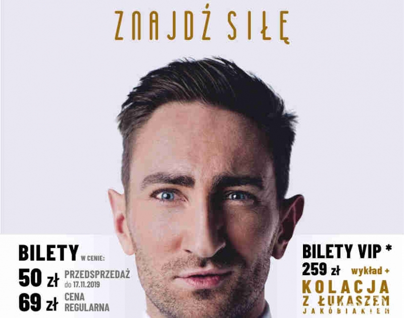 Piotr Najsztub we WPROST napisał o nim: „Ludzki czołg z Radomia”. ”Znajdź siłę” to wykład, który pokazuje, jak wytrwałość i odpowiednie nastawienie pozwalają polepszyć nasze jutro. Łukasz Jakóbiak przytacza w nim kilkanaście autorskich historii, które pokazują, że warto marzyć i nie bać się realizować nawet najbardziej szalonych i odważnych pomysłów. Wykład motywuje, dodaje odwagi do realizowania celów i przesuwa granice wyobraźni. Jak nauczyć się instrukcji obsługi własnej osoby? Co zrobić, gdy nam się nie chce? To kultowy wykład, który może zmienić podejście do życia.