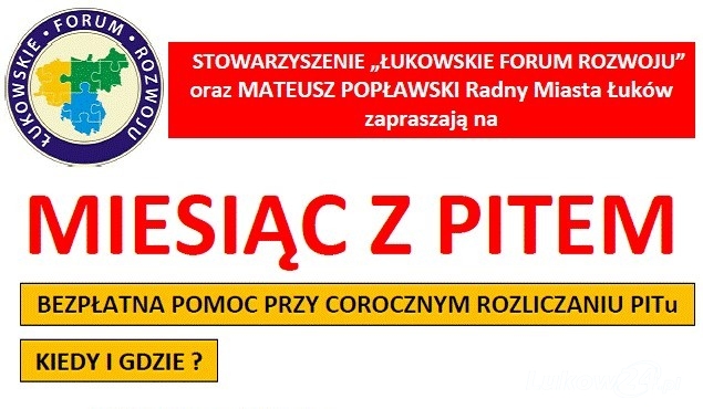 WiadomościŁukowskie Forum Rozwoju zaprasza do skorzystania z okazji rozliczenia podatku za darmo.