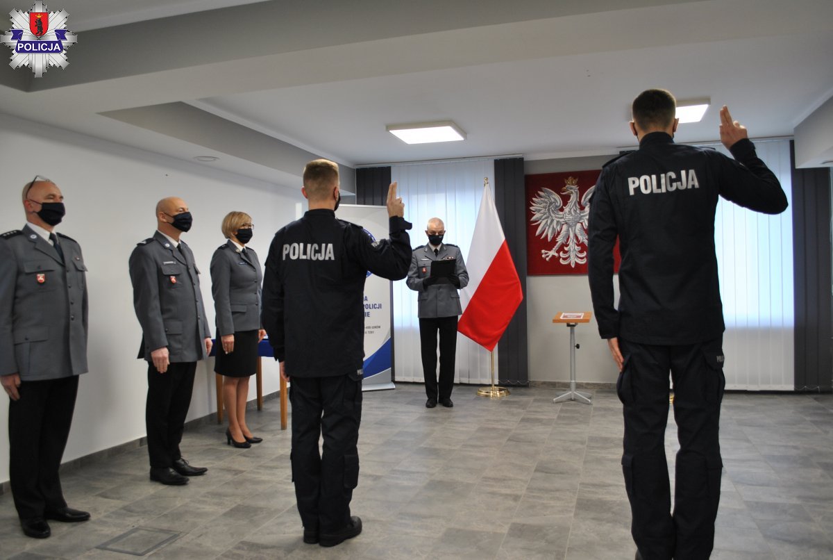 Podczas uroczystości jaka odbyła się w Komendzie Powiatowej Policji w Łukowie rotę ślubowania złożyło dwóch policjantów. Młodzi stażem mundurowi niedawno przeszli postępowanie kwalifikacyjne. Musieli wykazać się nie tylko wiedzą, ale także doskonałym zdrowiem i kondycją fizyczną.