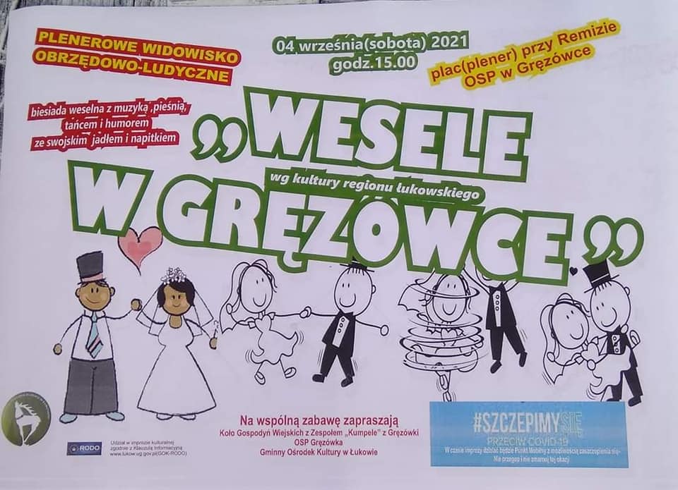 Podczas „Wesela w Gręzówce” będzie też można zaszczepić się przeciwko COVID-19 oraz wziąć udział w konkursie ogłoszonym przez gminę Łuków pn. „Szczepimy się – chronimy się”. Na zaszczepionych czekają atrakcyjne nagrody.