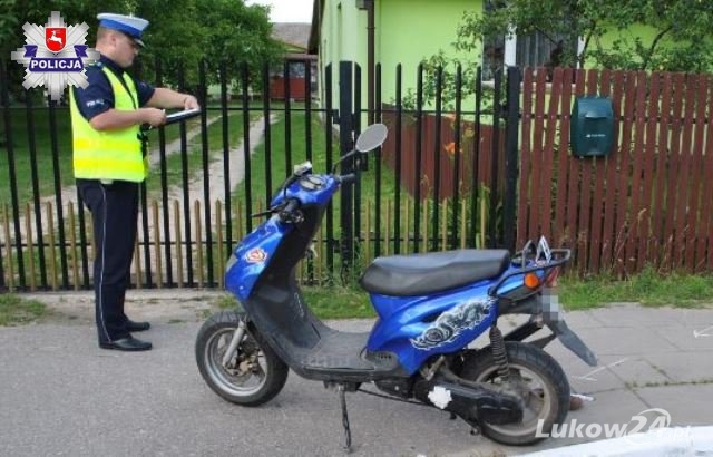 Ze wstępnych ustaleń policjantów z łukowskiej drogówki wynika, że mężczyzna kierował motorowerem nie mając kasku ochronnego.