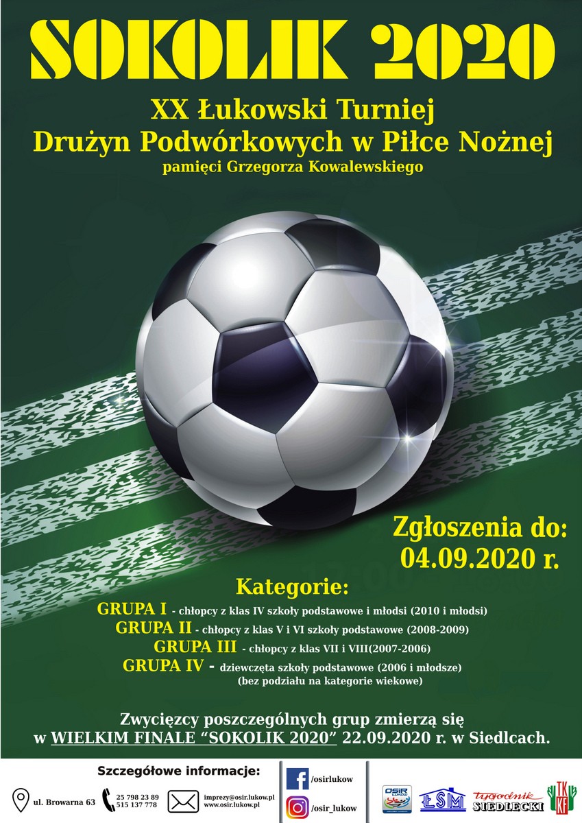 Drużyny, które zajmą pierwsze miejsca w swoich grupach rozgrywkowych zmierzą się 22.09.2020 r. w Wielkim Finale „SOKOLIK 2020" na głównej płycie Stadionu Miejskiego przy ul. Jana Pawła II w Siedlcach.