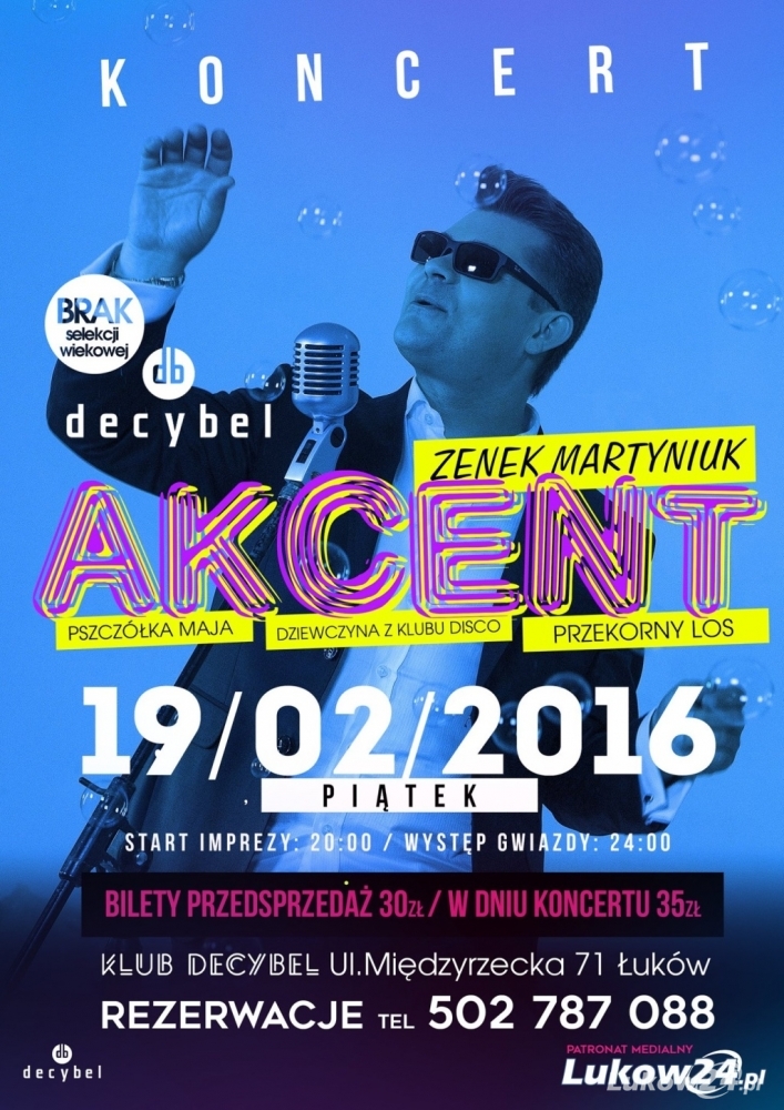 Wkrótce - 19 lutego - w Decybelu wystąpi Zenek Martyniuk z zespołu \"Akcent\". Kto chce pobawić się do piosenek \"Gwiazda\", \"Dziewczyna z klubu disco\" czy \"Przekorny los\" będzie miał na to szansę już niedługo.