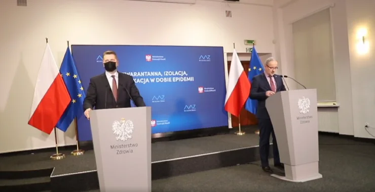 Autor: Screen - Ministerstwo Zdrowia/Facebook | Opis: Konferencja prasowa Adama Niedzielskiego i Przemysława Czarnka w sprawie zmian obostrzeń
