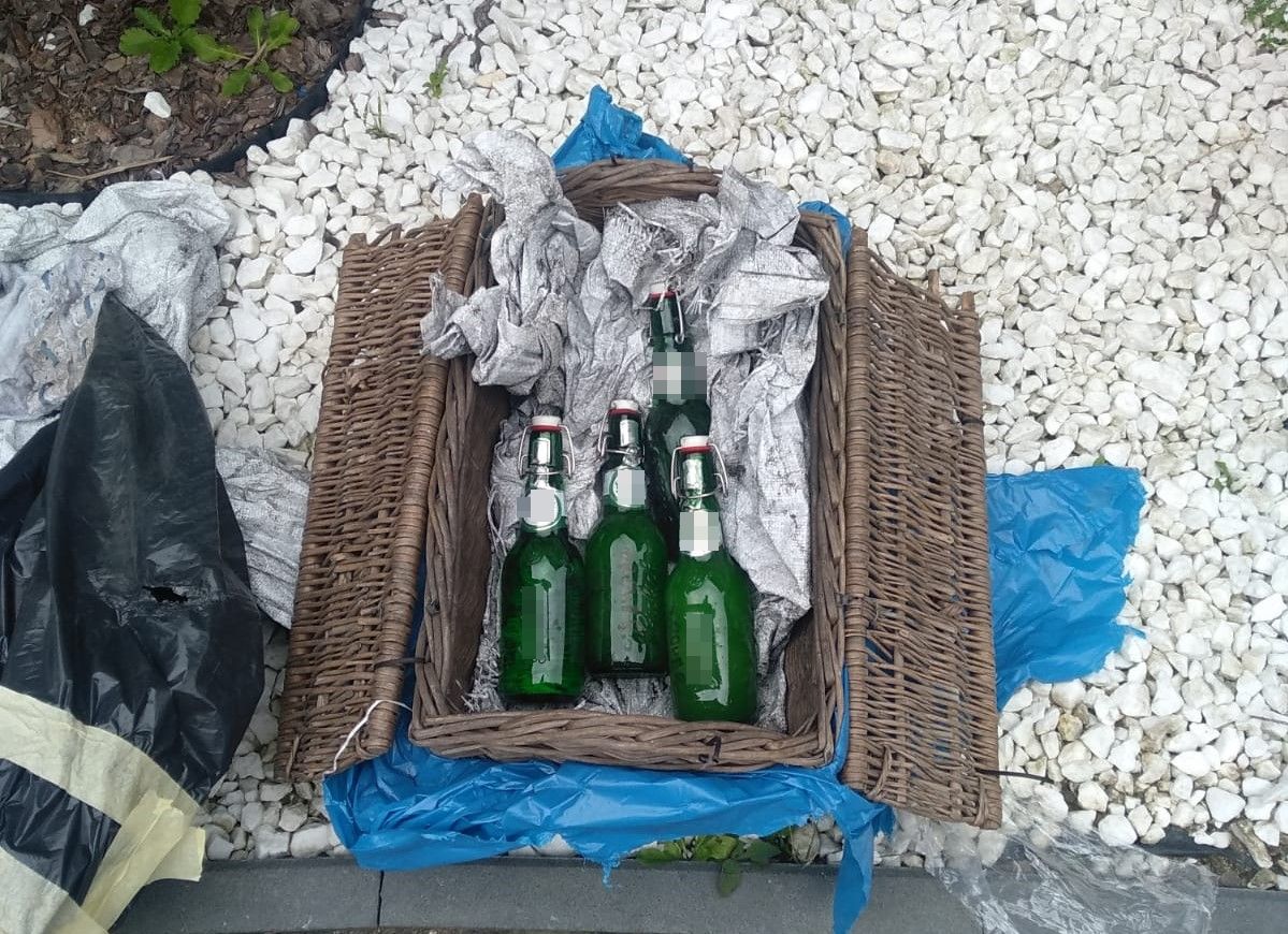 Policjanci w trakcie przeszukania na terenie firmy odnaleźli przesyłkę zawierającą sypką substancję oraz 4 butelki piwa. Jak się okazało, wewnątrz była płynna amfetamina oraz inne substancje niezbędne do przygotowania narkotyku. Łącznie zabezpieczono półprodukty umożliwiające przygotowanie 5 kilogramów amfetaminy.