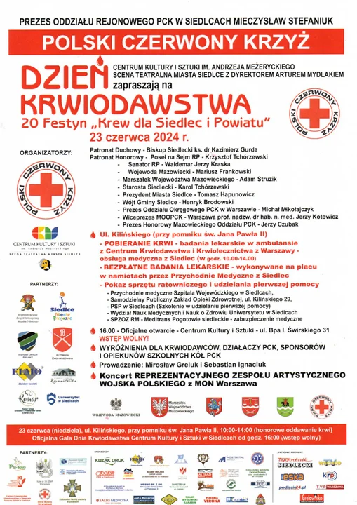 Bezpłatne badania lekarskie i punkt pobierania krwi zostaną zlokalizowane przy ul. Kilińskiego (przy pomniku św. Jana Pawła II).
