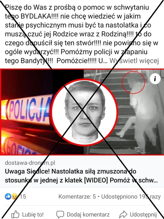 Policja nie publikowała wizerunku sprawcy takiego zdarzenia ani też nie udostępniała filmu. Strona służy do wyłudzenia danych logowania do Facebooka i została już zgłoszona jako fałszywa.