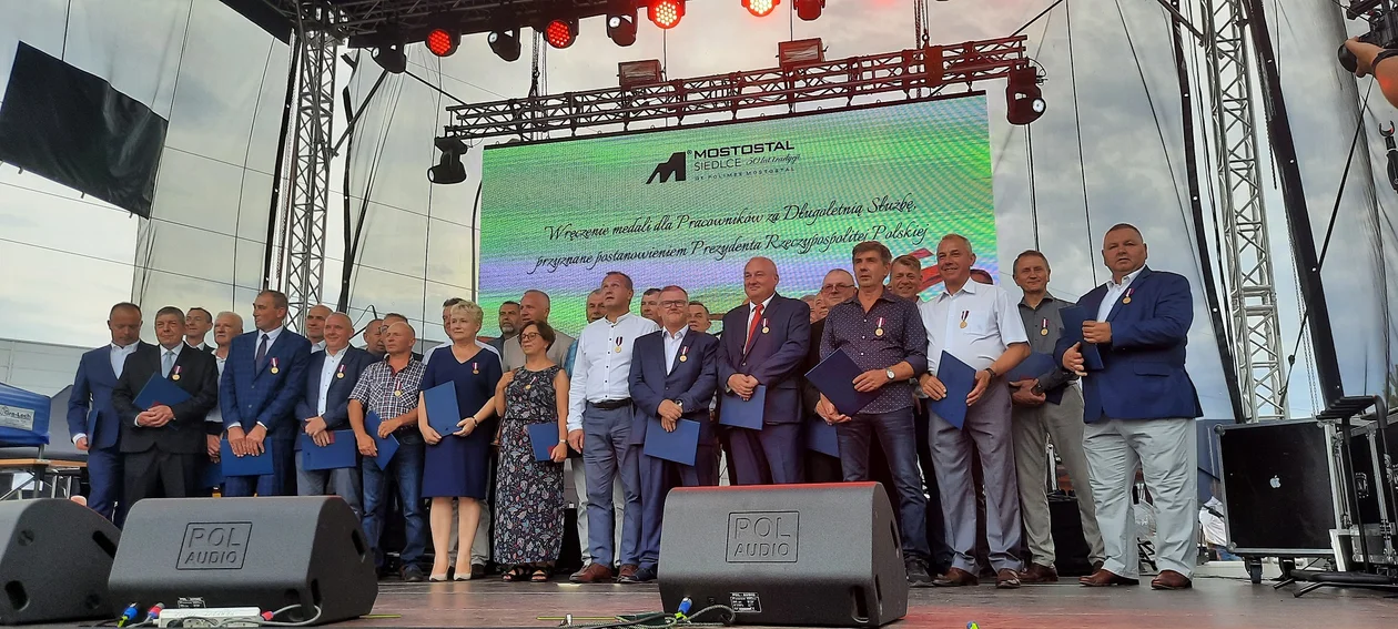 - Mostostal Siedlce opiera swoją działalność na trzech obszarach: na konstrukcjach, kratach pomostowych i ocynkowni. Możliwości produkcyjne są stale rozwijane. To pięćdziesiąt lat działalności dzięki staraniom wielu pokoleń pracowników Mostotalu. Nasza firma jest zaliczana do europejskiej czołówki producentów konstrukcji stalowych. Z powodzeniem realizujemy najbardziej wymagające projekty dla naszych partnerów biznesowych w Polsce i w Europie. Realizowaliśmy ważny z punktu widzenia bezpieczeństwa naszego kraju projekt związany z budową zapory na granicy polsko-białoruskiej. Udało nam się ten strategiczny, duży projekt - ponad 40 tysięcy ton - zrealizować w terminie i przez to jesteśmy postrzegani jako solidny partner w realizacji najtrudniejszych projektów na rynku. Chciałbym zwrócić uwagę, że na dzisiaj mamy dużo zamówień na najbliższe miesiące i kwartały. To pozwala nam spokojnie patrzeć w przyszłość. Chciałbym podziękować wszystkim pracownikom, byłym i obecnym, kontrahentom i klientom oraz wszystkim, którzy wspierali Mostostal - za oddanie i budowanie pozycji. Dzięki państwa pracy to Mostostal to dziś prężna, rozwijająca się firma. - podkreślał Tomasz Hapunowicz, prezes Zarządu Mostotalu Siedlce.