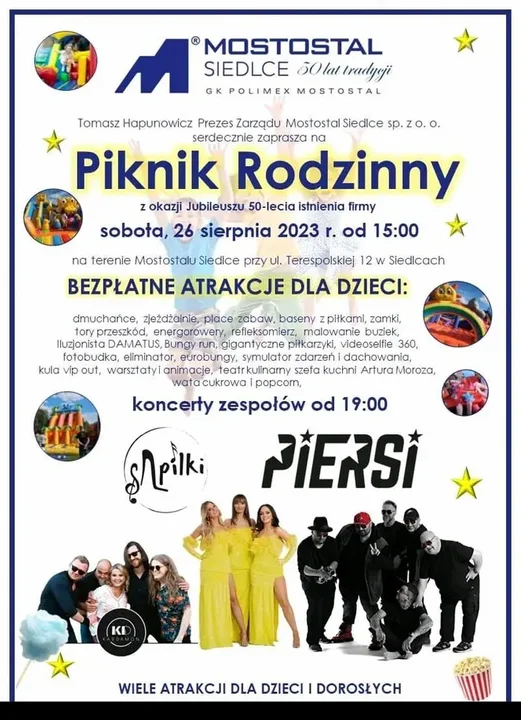 Z Siedlec26 sierpnia odbędzie się Piknik Rodzinny z okazji jubileuszu istnienia firmy Mostostal Siedlce.