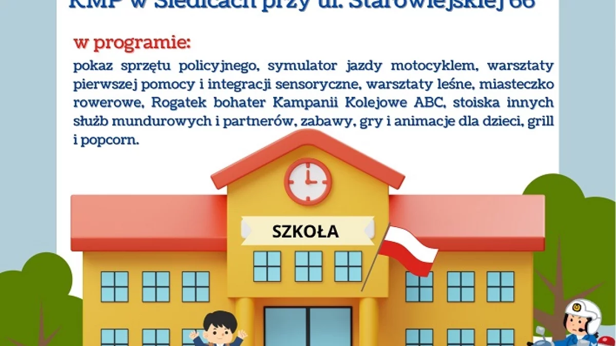 Piknik odbędzie się na terenie Komendy Miejskiej Policji w Siedlcach przy ul. Starowiejskiej 66 od 14.00.