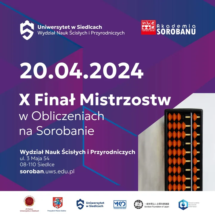 Z SiedlecWydziału Nauk Ścisłych i Przyrodniczych UwS oraz Akademii Sorobanu organizują jubileuszowy X Finał Mistrzostw w obliczeniach na Sorobanie.