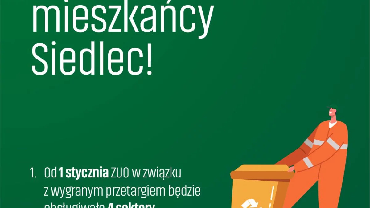 Z SiedlecOd 1 stycznia 2026 r. Zakład Utylizacji Odpadów Spółka z o.o. w Siedlcach przejmie obsługę odbioru i zagospodarowania odpadów komunalnych z terenu sektorów I i II.
