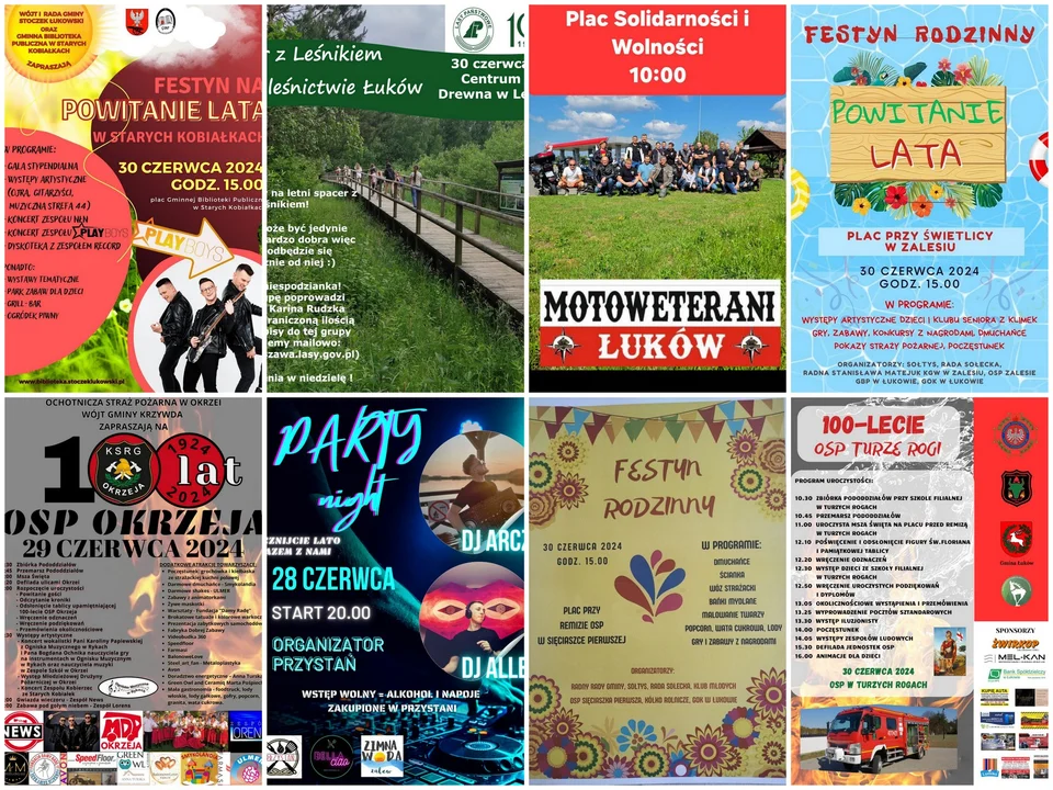 30 CZERWCA (NIEDZIELA) - FESTYN NA POWITANIE LATA W STARYCH KOBIAŁKACH, Plac GBP w Starych Kobiałkach, od godz. 15. Program: Gala Stypendialna, występy artystyczne: Ojra, Gitarzyści, Muzyczna Strefa 44, Koncert zespołu NŁN, Koncert zespołu Playboys, Dyskoteka z zespołem Record. Dodatkowe atrakcje: wystawy tematyczne (w tym stoisko Młodzieżowej Brygady Historycznej), park zabaw dla dzieci, grill-bar.