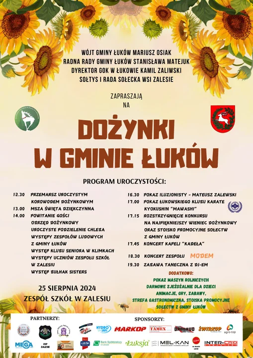 Zapraszamy wszystkich serdecznie do Zalesia 25 sierpnia na dożynki gminy Łuków.