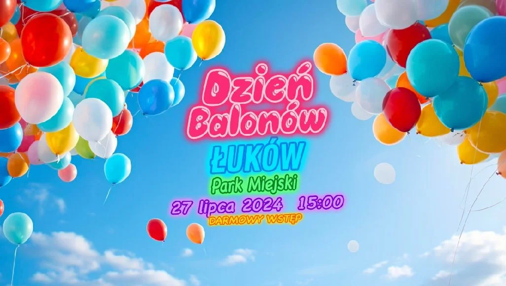 Dzień Balonów to doskonała zabawa dla wszystkich! Po raz pierwszy w Łukowie. Czeka nas wielkie balonowe i kolorowe szaleństwo. Wyśmienita zabawa gwarantowana! Przygotowaliśmy: niezliczone ilości kolorowych balonów, balonowe animacje, wyjątkowe balonowe show, balonowe warsztaty oraz wielki wyrzut balonów. Oprócz tego za opłatą dodatkowe atrakcje: balony i akcesoria, kolorowe łakocie i granity oraz dmuchańce.
