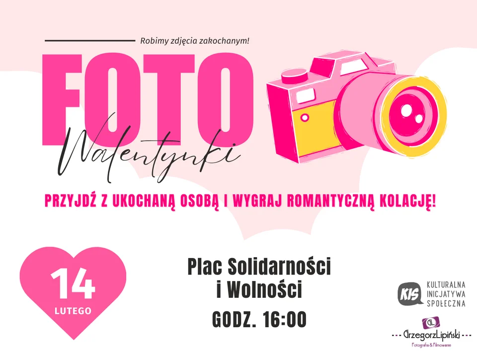 Na FOTOwalentynki zapraszają stowarzyszenie Kulturalna Inicjatywa Społeczna, Miasto Łuków i burmistrz Piotr Płudowski. Wszyscy zachęcają do zarezerwowania sobie kilku minut w walentynkowe popołudnie 14 lutego i pojawienie się na Placu Solidarności i Wolności, by wspólnie uczcić miłość do siebie nawzajem i do naszego ukochanego Łukowa.