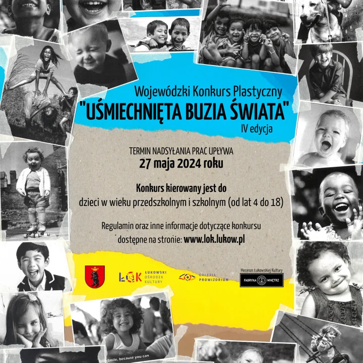 Szczegóły konkursu w regulaminie na stronie: www.lok.lukow.pl/artykul/4689,iv-edycja-wojewodzkiego-konkursu-plastycznego-usmiechnieta-buzia-swiata-zgloszenia-do-27-05-24