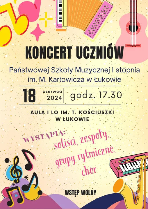 WYSTĄPIA: soliści, zespoły, grupy rytmiczne, chór. WSTĘP WOLNY