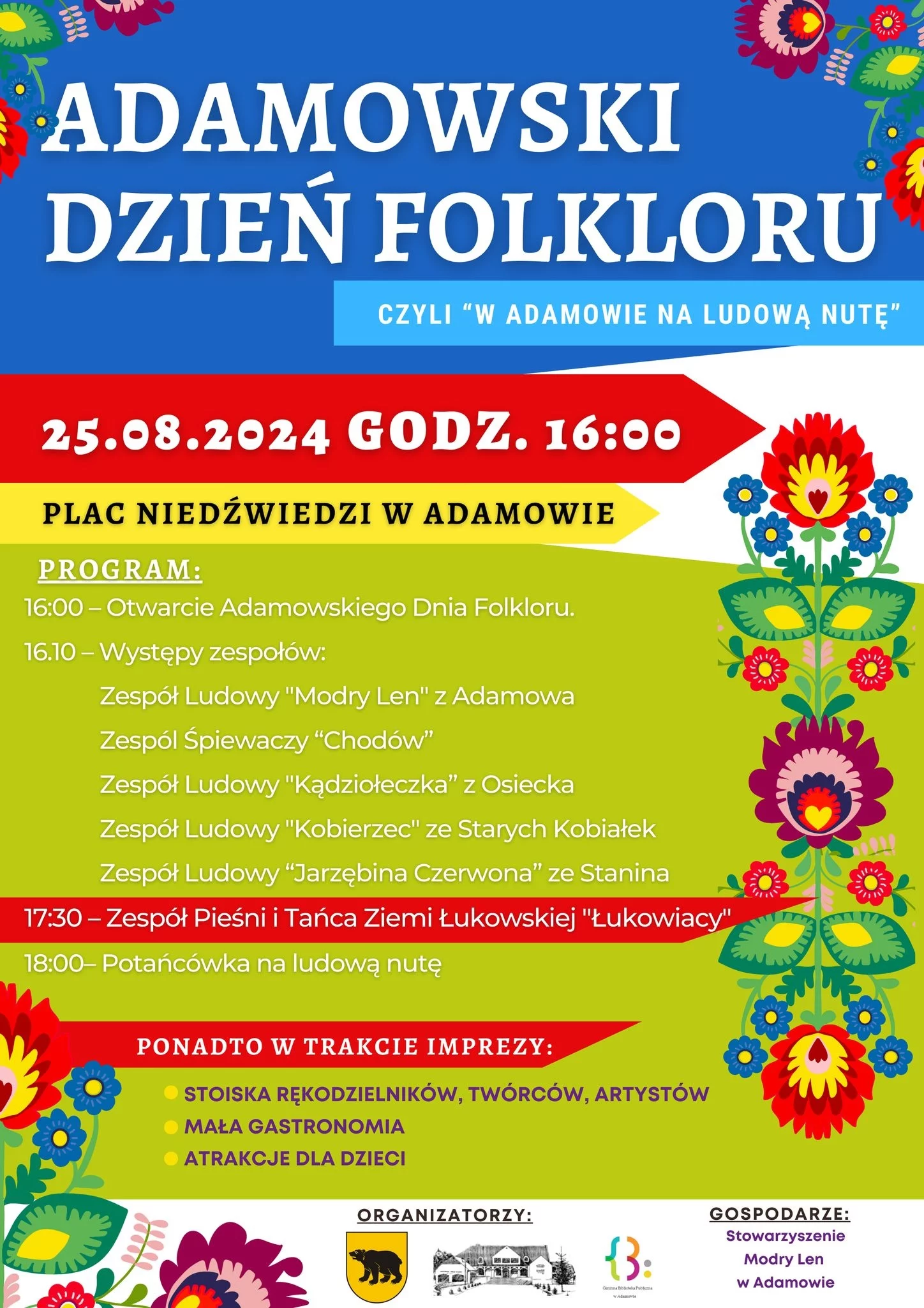 - 16:00 – Otwarcie Adamowskiego Dnia Folkloru