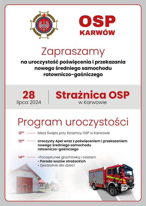 - 12:00 - Msza Święta przy Strażnicy OSP w Karwowie