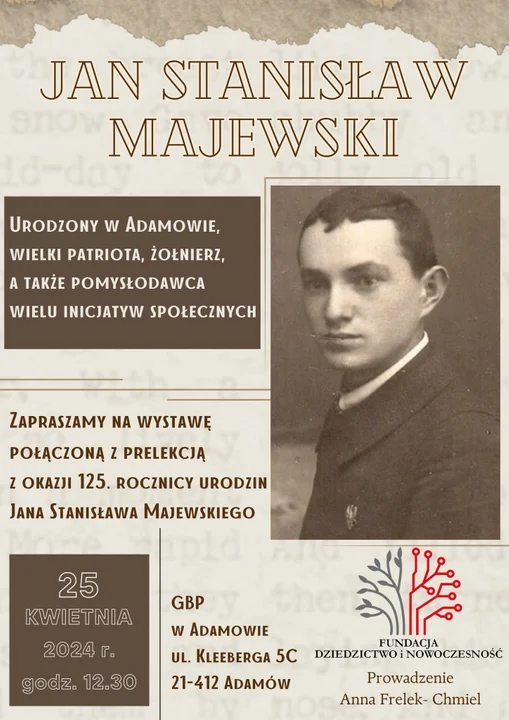 Organizatorem spotkania jest biblioteka. Prelekcję na temat Jana St. Majewskiego poprowadzi Anna Frelek-Chmiel - prezes Fundacji Dziedzictwo i Nowoczesność. Wsparli ją pasjonaci Ziemi Łukowskiej - Magdalena Bilska i Justyna Jarosz-Romaniec.